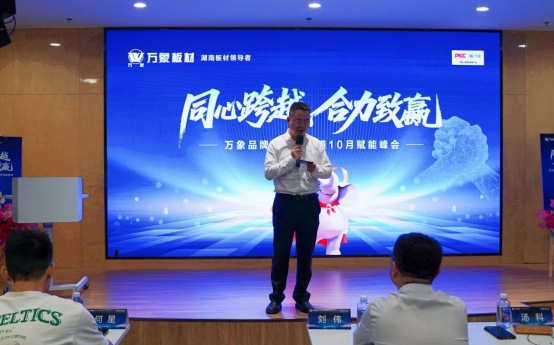湖南萬象裝飾材料有限公司、湖南旺德府建材科技有限公司總經(jīng)理湯科先生,以“模式賦能產(chǎn)品價值”為核心展開分享。他不僅系統(tǒng)闡述了萬象品牌“直連客戶、嚴(yán)控品質(zhì)、高效服務(wù)”的三大優(yōu)勢,更通過深度解讀圓弧產(chǎn)品、金鉆龍骨、石膏板2代三大新產(chǎn)品,讓核心加盟商直觀感受到品牌強(qiáng)勁的產(chǎn)品力。同時,他進(jìn)一步明確了集團(tuán)“高端板材+高端輔材+高端衣柜定制”的戰(zhàn)略定位,為品牌發(fā)展方向錨定核心。