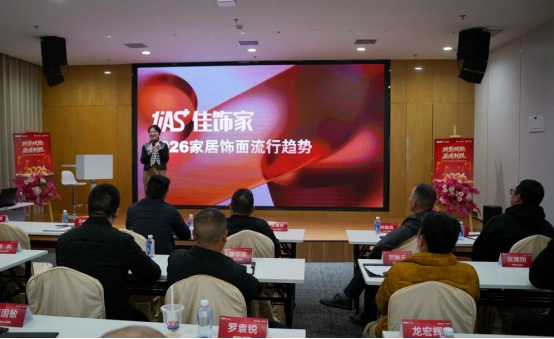 渠道為翼,產(chǎn)品為核。本次峰會特邀成都佳飾家裝飾新材料科技有限公司產(chǎn)品總監(jiān)陳靜親臨現(xiàn)場,帶來2026年度最新花色鑒賞與重磅推介。從設(shè)計源頭深度解讀新系列花色的核心優(yōu)勢,精準剖析產(chǎn)品組合邏輯與全風(fēng)格搭配體系。