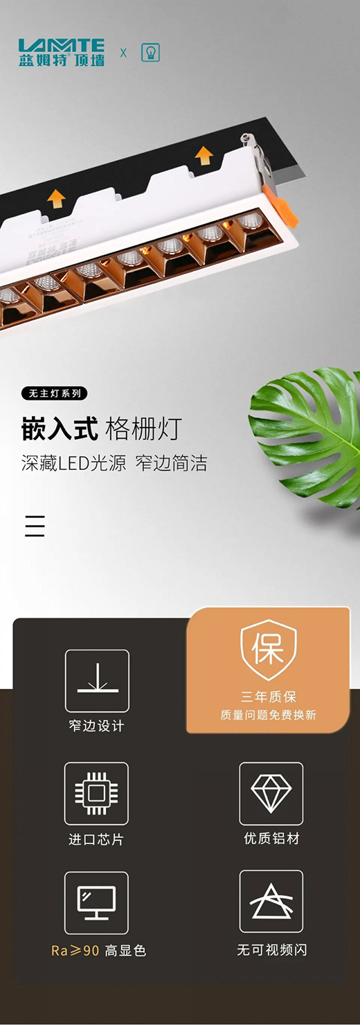 藍(lán)姆特防眩光方燈VS嵌入式格柵燈,都充分滿足于您家居空間中,不同場景對(duì)燈光需求,給您最明亮的光線,賦予每一角落,伴你日夜。
