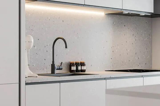 只有頂燈的話必然背光,櫥柜操作臺(tái)上方得加一條亮白色操作燈。