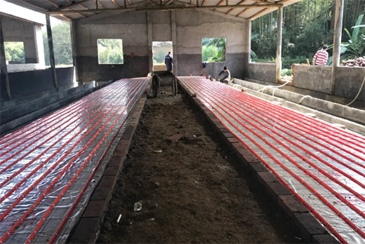養(yǎng)殖場主要以鋪設地暖管的方式供暖,因為地暖管一圈圈鋪在地面上,熱量分布非常均勻,可以有效提高動物的舒適度,它們不會因為地面冷而來回走動,愿意長時間臥在地面上,更容易長肉,成長率也越高。