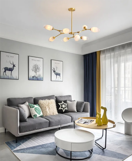 說到北歐風(fēng),很多人都會想到簡約、冷淡,那是因為北歐風(fēng)格的居室常用白色、灰色、藍(lán)色、粉色、綠色作為主題色,崇尚干凈和明亮,但是給人的感覺會帶一絲“冷”的氣質(zhì),這個時候如果搭配一盞金色的燈飾,整個居室會瞬間提亮,變得溫暖起來。