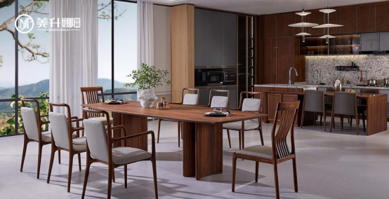 選擇美升娜家具北美黑胡桃木,不僅是選擇一種材質(zhì),更是選擇一種生活方式。在這里,木材的溫潤與煙火的熱情交織,讓平凡的日常升華為值得品味的藝術(shù)。無論是獨(dú)自享受烹飪的寧靜,還是與親友分享美食的歡愉,這個空間都能讓生活綻放出最動人的光彩。