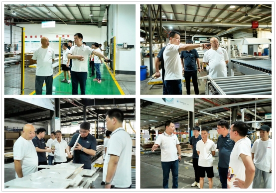 隨后,一行人前往旺德府工業(yè)園,參觀品牌自有工廠。在生產(chǎn)車間,大家通過觀木紋辨真?zhèn)?、觸板材測質(zhì)感、聞膠體驗環(huán)保的沉浸式交互,深度觸摸品質(zhì)內(nèi)核。