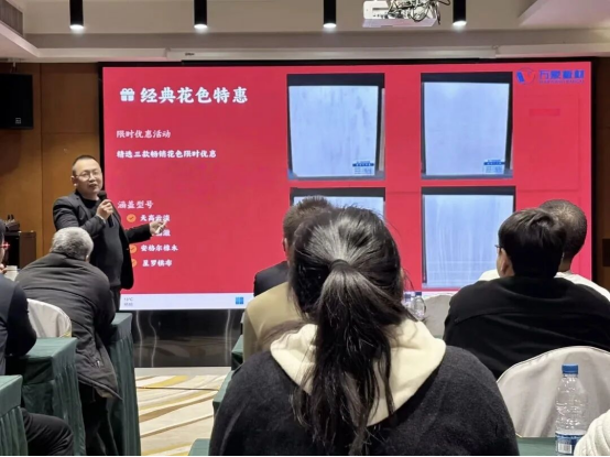 針對本次會議專屬的渠道合作政策、促銷支持方案,西安仕亞木業(yè)有限公司加盟中心銷售經(jīng)理張瑩先生,進行全面宣講,以極具誠意的政策紅利、切實可行的落地舉措及清晰透明的合作路徑,為在場渠道伙伴搭建起高效共贏的合作橋梁,進一步激發(fā)了大家的合作熱情與市場開拓動力。