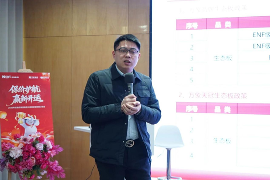 隨后,旺德府家居集團(tuán)供應(yīng)鏈中心總經(jīng)理周軍先生圍繞2026年度供應(yīng)體系、產(chǎn)品研發(fā)及環(huán)保創(chuàng)新發(fā)表專題講話,重點(diǎn)強(qiáng)調(diào)將持續(xù)提升產(chǎn)品性能與環(huán)保標(biāo)準(zhǔn),加快產(chǎn)品拓展與結(jié)構(gòu)優(yōu)化,以更穩(wěn)定的品質(zhì)與更高效的交付能力,為市場(chǎng)與合作伙伴提供有力支撐。