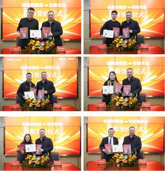 會(huì)議最后,董事長(zhǎng)周曉輝代表旺德府集團(tuán),與國(guó)內(nèi)外六大品牌隆重完成戰(zhàn)略簽約。雙方以深度戰(zhàn)略協(xié)同與資源互通為核心,提供全鏈路賦能與發(fā)展支撐,攜手構(gòu)筑產(chǎn)業(yè)協(xié)同新生態(tài),共啟家居建材行業(yè)高質(zhì)量發(fā)展新征程。