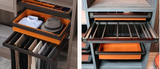 五金就像柜子的關節(jié),選對了,用十年都順暢無聲;選錯了,每天都要被異響、下垂困擾。所有五金,一定要選帶阻尼的。開關柜門時能緩沖,沒有撞擊聲,也能防止夾手,家里有小孩的,這點尤其重要。選品牌五金,耐用又省心。