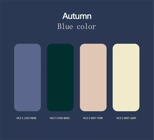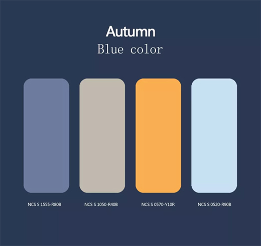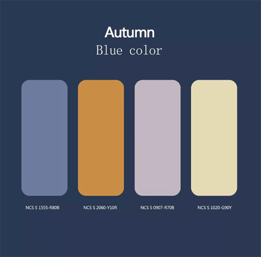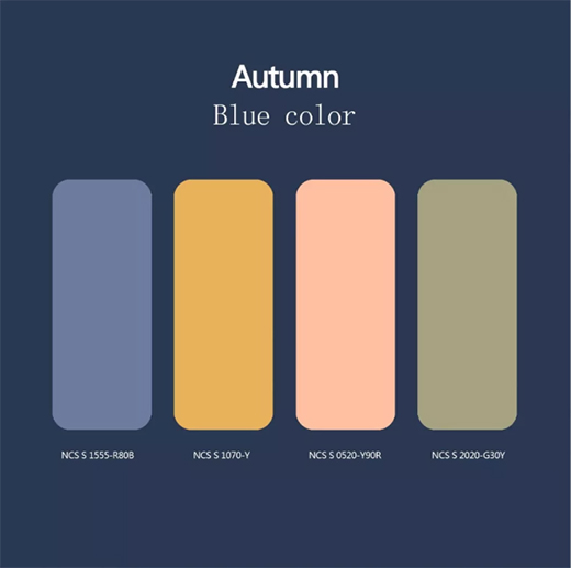 ▼【寧靜藍+金黃+鎘橘黃+橄欖綠】這個配色中寧靜藍是毫無疑問的中心色彩,而其他幾種輔助色彩相對純度較低,然而在亮度上卻不暗淡,這樣整體高明度的組合能令人心情輕松,產(chǎn)生無壓力的感覺,主要適用于生活風(fēng)格的設(shè)計中。