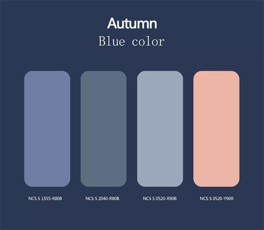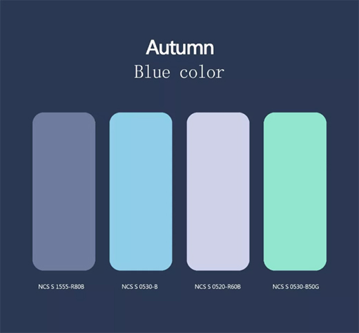 ▼【寧靜藍+藍光色+淡紫色+薄荷綠】以寧靜藍為主色的類似色搭配并不會給人出彩的感覺,寧靜藍本身就是一種低調(diào),不具有前進感的色彩,接近單色搭配的同類色搭配也讓藍色本身的特性更加突出,少了其他顏色的陪襯,給人獨立,孤獨的感覺。