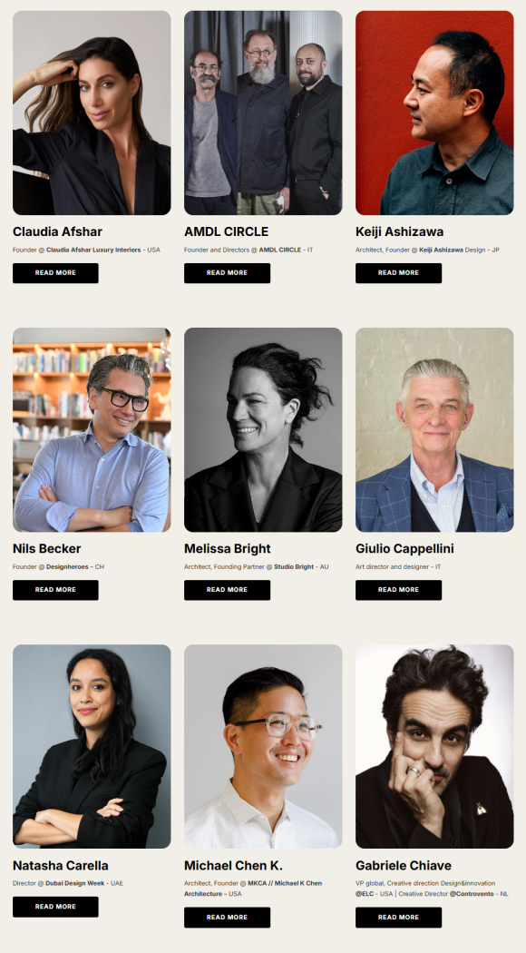 本屆賽事評審團堪稱"設(shè)計界的全明星陣容",匯聚43位全球創(chuàng)意領(lǐng)袖。涵蓋建筑、室內(nèi)、藝術(shù)與可持續(xù)發(fā)展領(lǐng)域。國際評委包括(列舉部分):