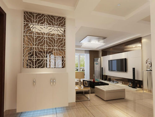 1、在客廳,應(yīng)結(jié)合隔斷柜、裝飾柜的設(shè)計(jì)把一些功能納入其中。